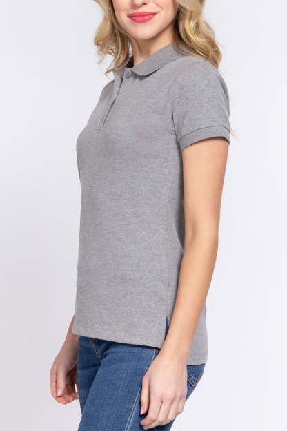 - Fabric: 65% Cotton 30% Polyester 5% Spandex Pique Knit