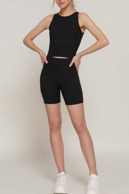 Basic Waist Band Power Stretch Workout Bike Shorts