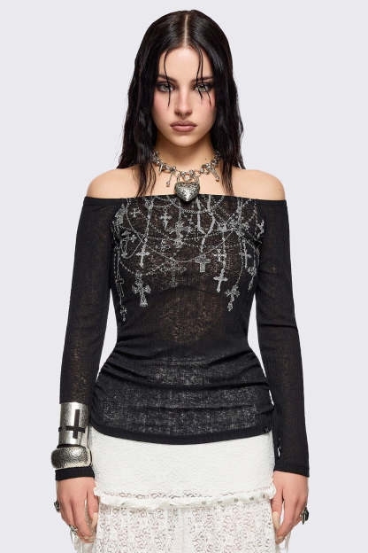 Rosary Off-Shoulder Top