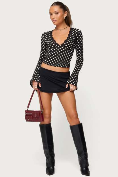 Polka Dot Lacey Plunge Neck Top