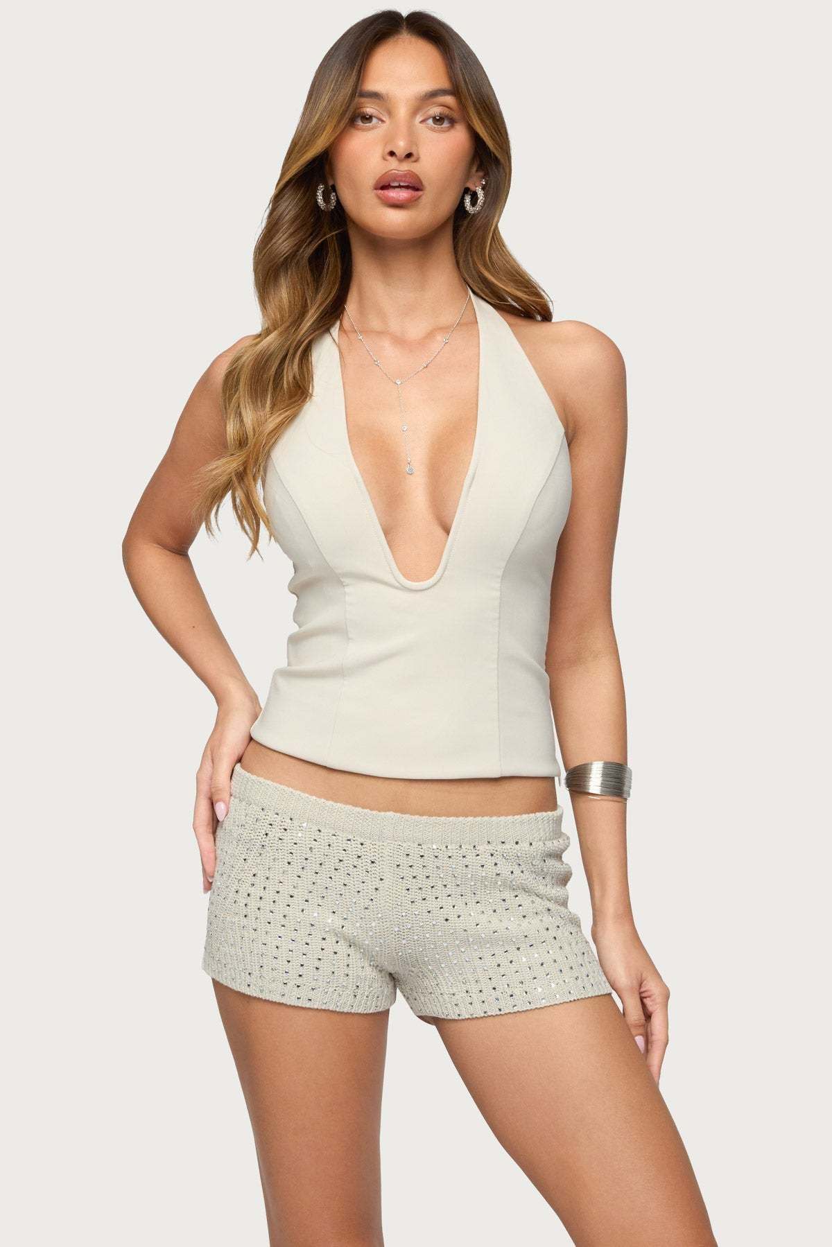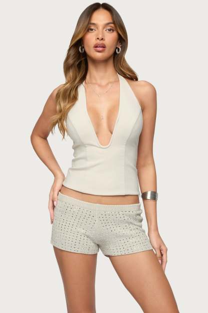 Loxley Stretchy Woven Plunge Halter Top
