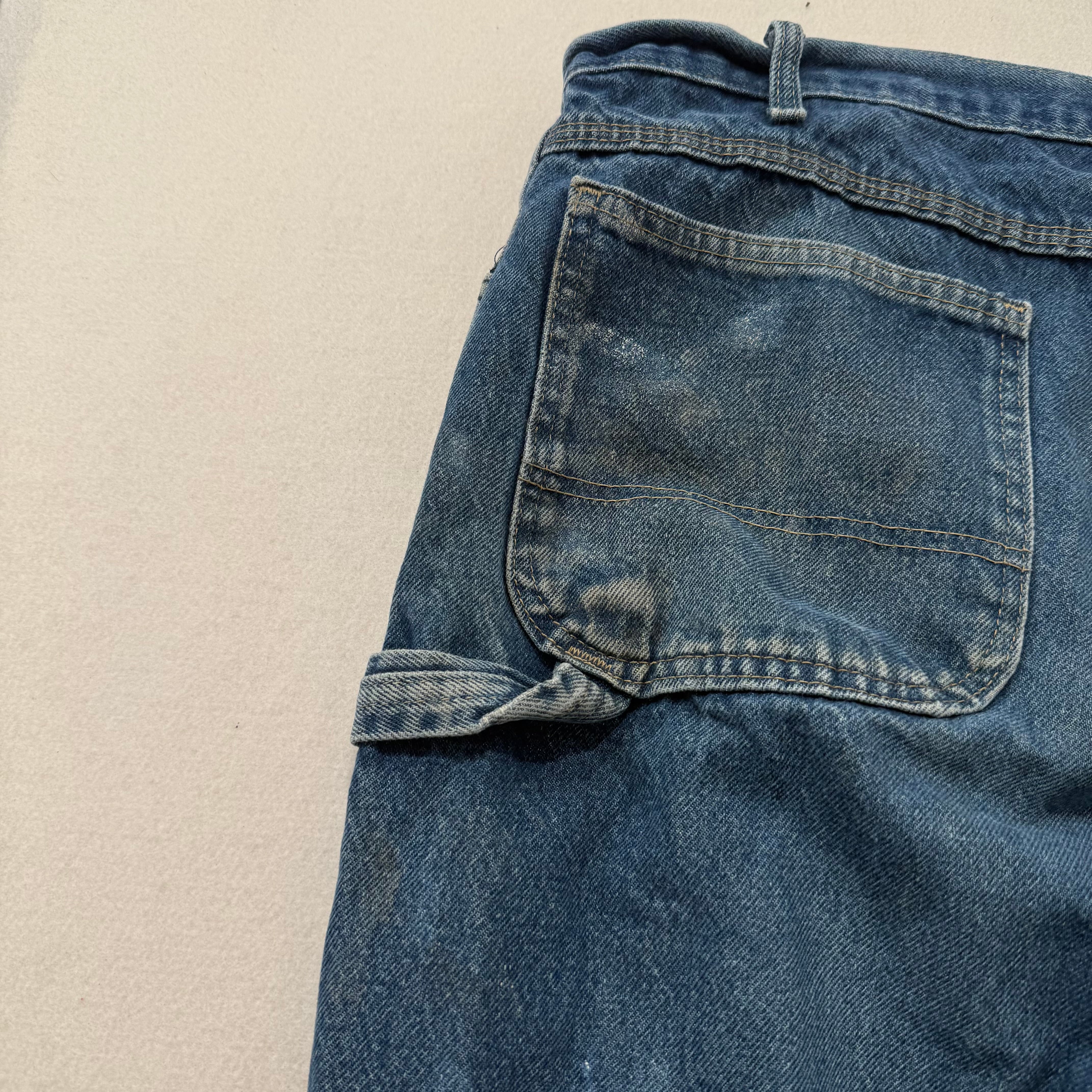 Men's Medium Blue Denim Wide Leg Carpenter Jeans Utility Pockets Size 38